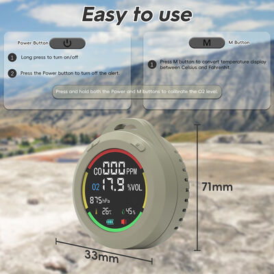 [Σχεδιασμός 6-σε-1 και Φορητός] Ο ανιχνευτής μονοξειδίου του άνθρακα για τροχόσπιτα ανιχνεύει co, o2, ατμοσφαιρική πίεση, υψόμετρο, θερμοκρασία, υγρασία σε πραγματικό χρόνο. Με μίνι μέγεθος 2,8 * 1,3 ίντσες, μπορεί εύκολα να τοποθετηθεί στην τσέπη. Επίσης, διαθέτει κορδόνι 7,8 ιντσών, μπορεί να κρεμαστεί και να σταθεί όρθιο.