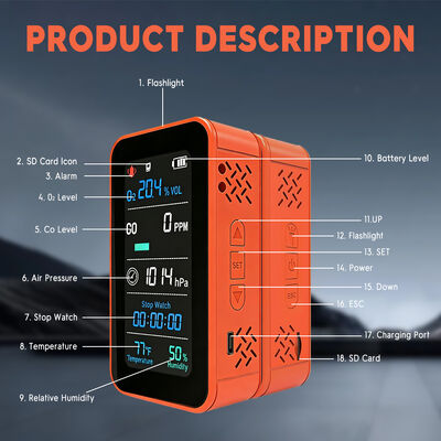 PT09 6-σε-1 Οθόνη Ποιότητας Αέρα - Ανιχνευτής CO O2 με Θερμοκρασία/Υγρασία/Υψόμετρο/Βαρόμετρο, Επαναφορτιζόμενη Φορητή Οθόνη Αερίων 4