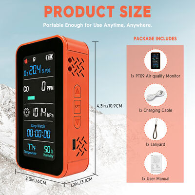PT09 6-σε-1 Οθόνη Ποιότητας Αέρα - Ανιχνευτής CO O2 με Θερμοκρασία/Υγρασία/Υψόμετρο/Βαρόμετρο, Επαναφορτιζόμενη Φορητή Οθόνη Αερίων 3